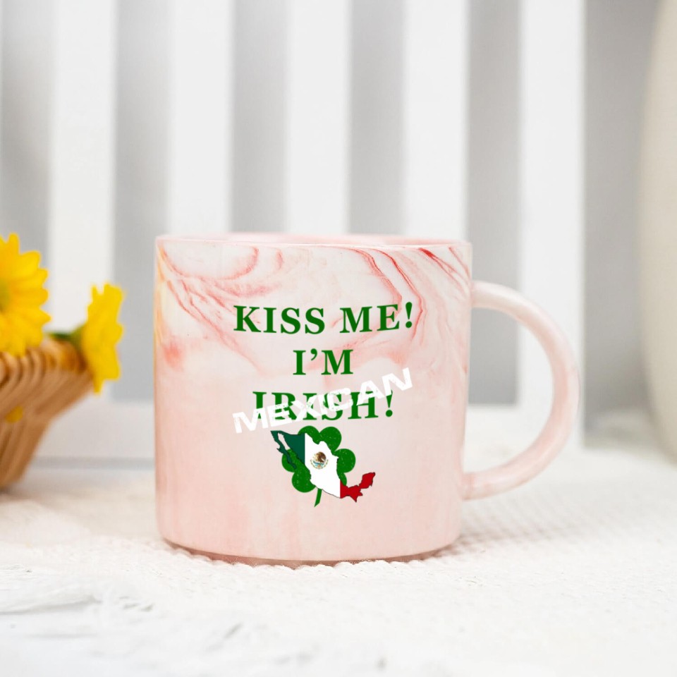 You are viewing an exclusive and elegant product St Patrick’S “Kiss Me I’M Mexican ” Marble Mugs For Pink belong theme Marble Mugs at Printblur