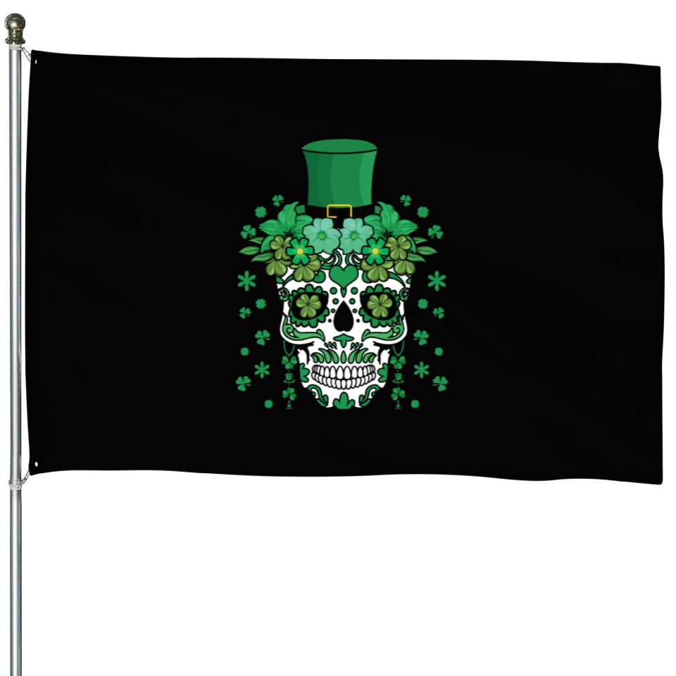 Buy eye-catching St Patty's Day Dia De Los Muertos Irish Flower House Flags or see more House Flags products at Printblur shop now to explore many surprises from our shop!