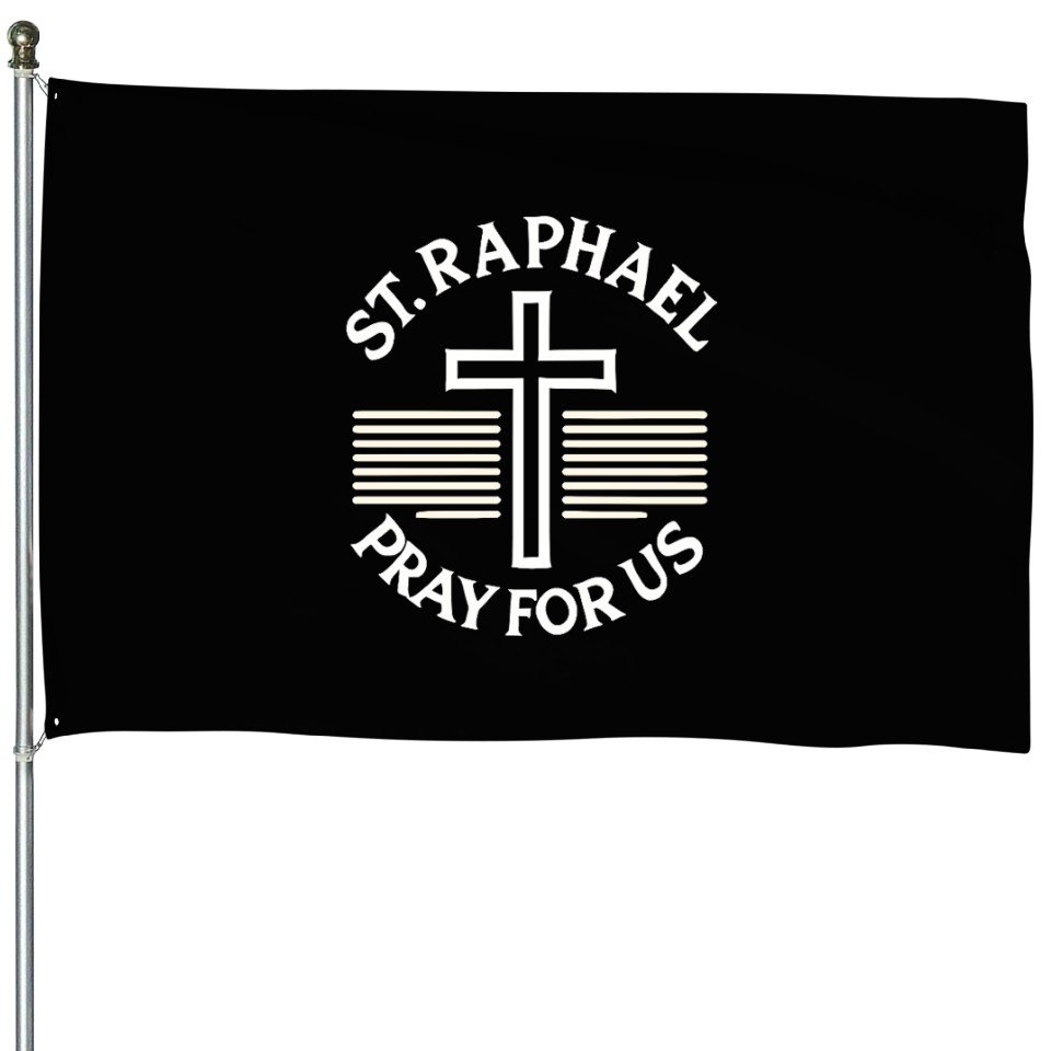 The product unique design you searched for is St. Raphael Pray for Us Catholic Patron Saint House Flags For Black belong theme House Flags at Printblur