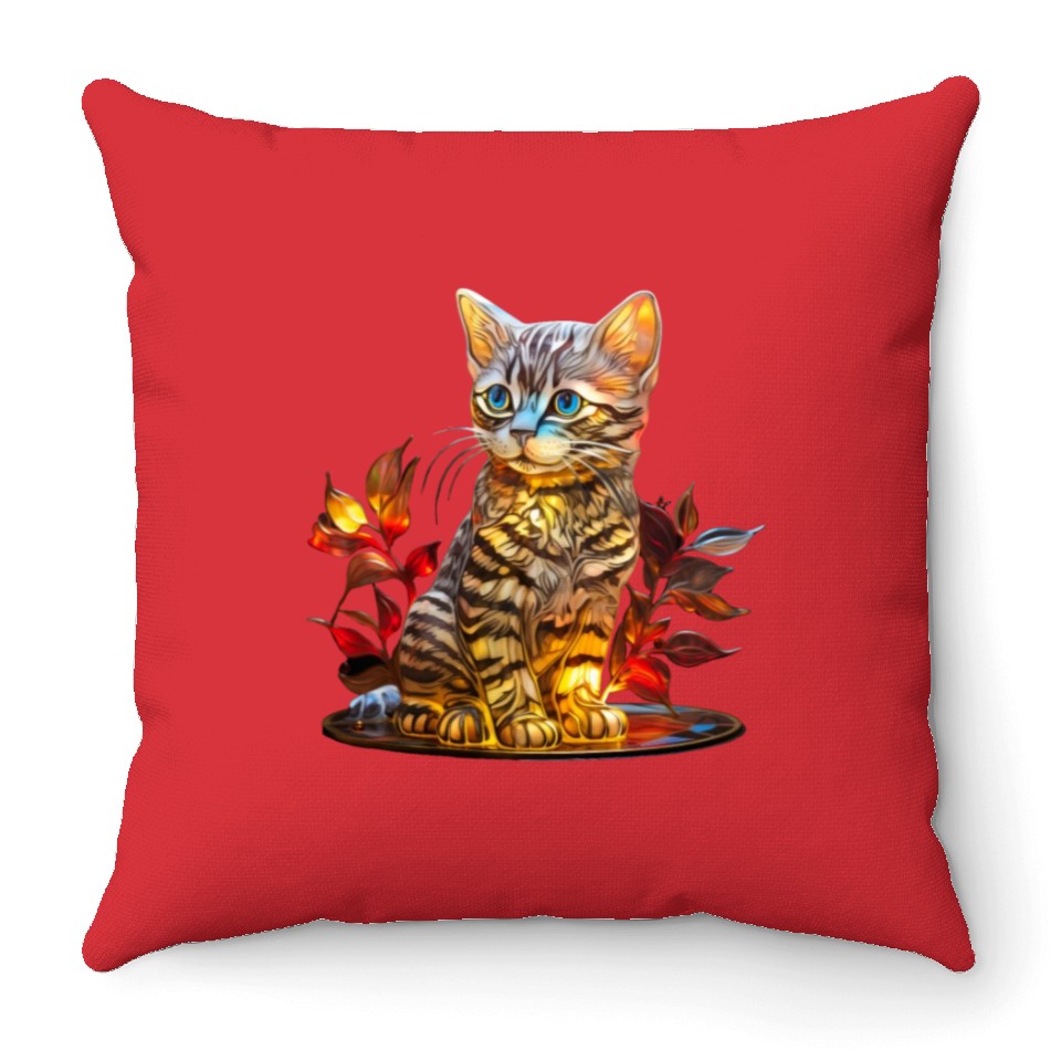 The item hot trend you're looking at is Stained Glass American Shorthair kitten Throw Pillows For Cover Only Red belong theme Throw Pillows at Printblur