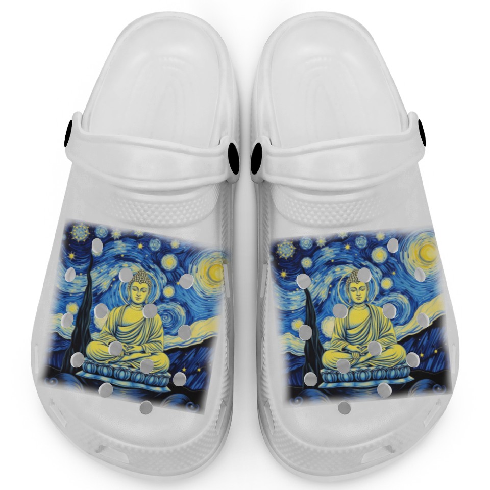 Buy eye-catching Starry Night Buddha Zen Art Inspired by Van Gogh Clogs or see more Clogs products at Printblur shop now to explore many surprises from our shop!
