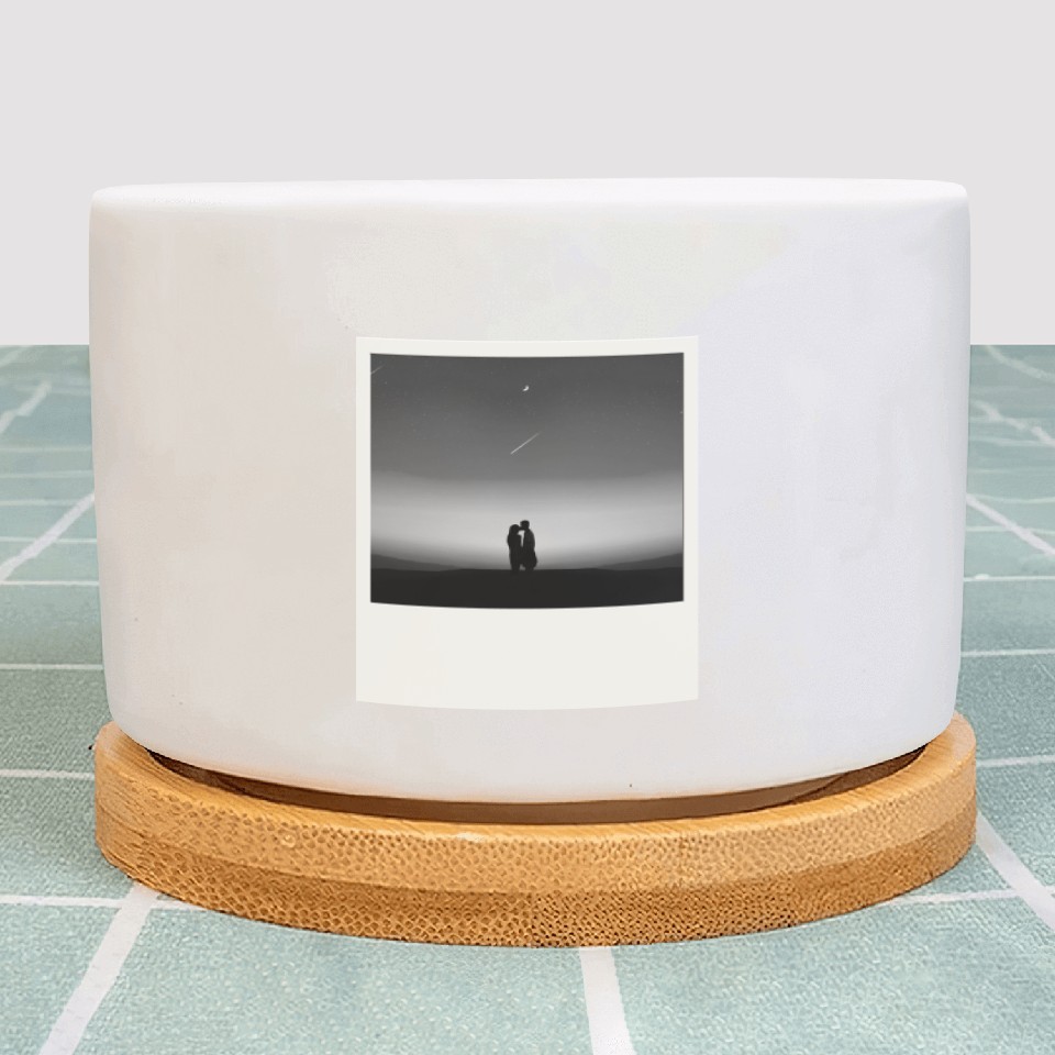 You're taking a peek at the product Starry Night Embrace Couple Polaroid Plant Pots For WHITE belong theme Plant Pots at Printblur