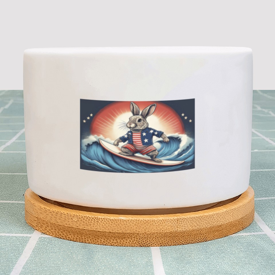Shop for attractive Stars & Stripes Surfer Bunny Plant Pots or see more Plant Pots products on https://printblur.com right now!