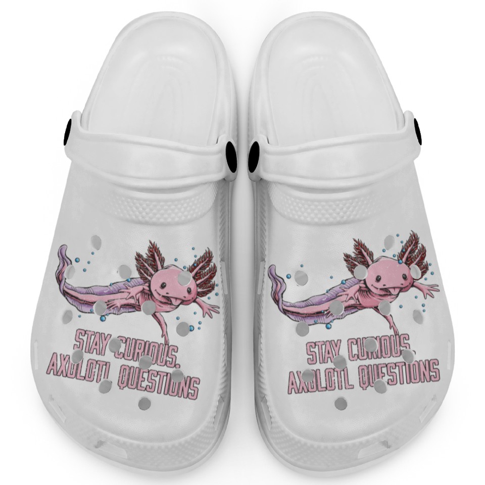 Buy eye-catching Stay Curious Axolotl Questions Salamander Funny Ax Clogs or see more Clogs products at Printblur shop now to explore many surprises from our shop!