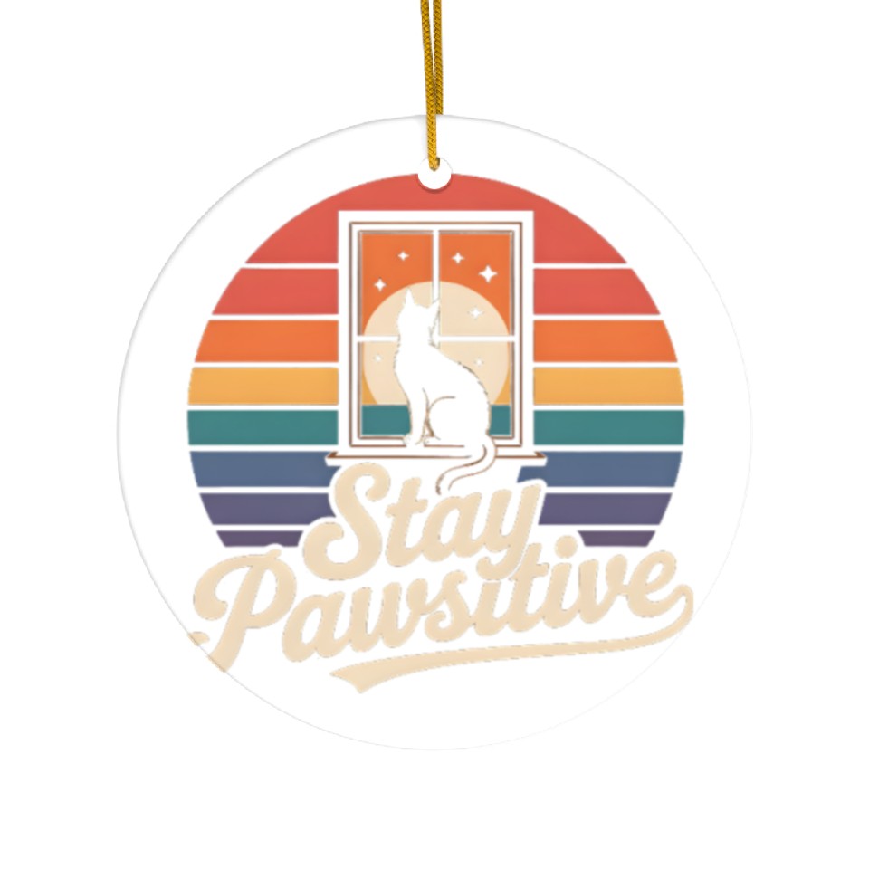 You're taking a peek at the product Stay Pawsitive Retro Cat Window Starry Night Ceramic Ornaments For WHITE belong theme Ceramic Ornaments at Printblur