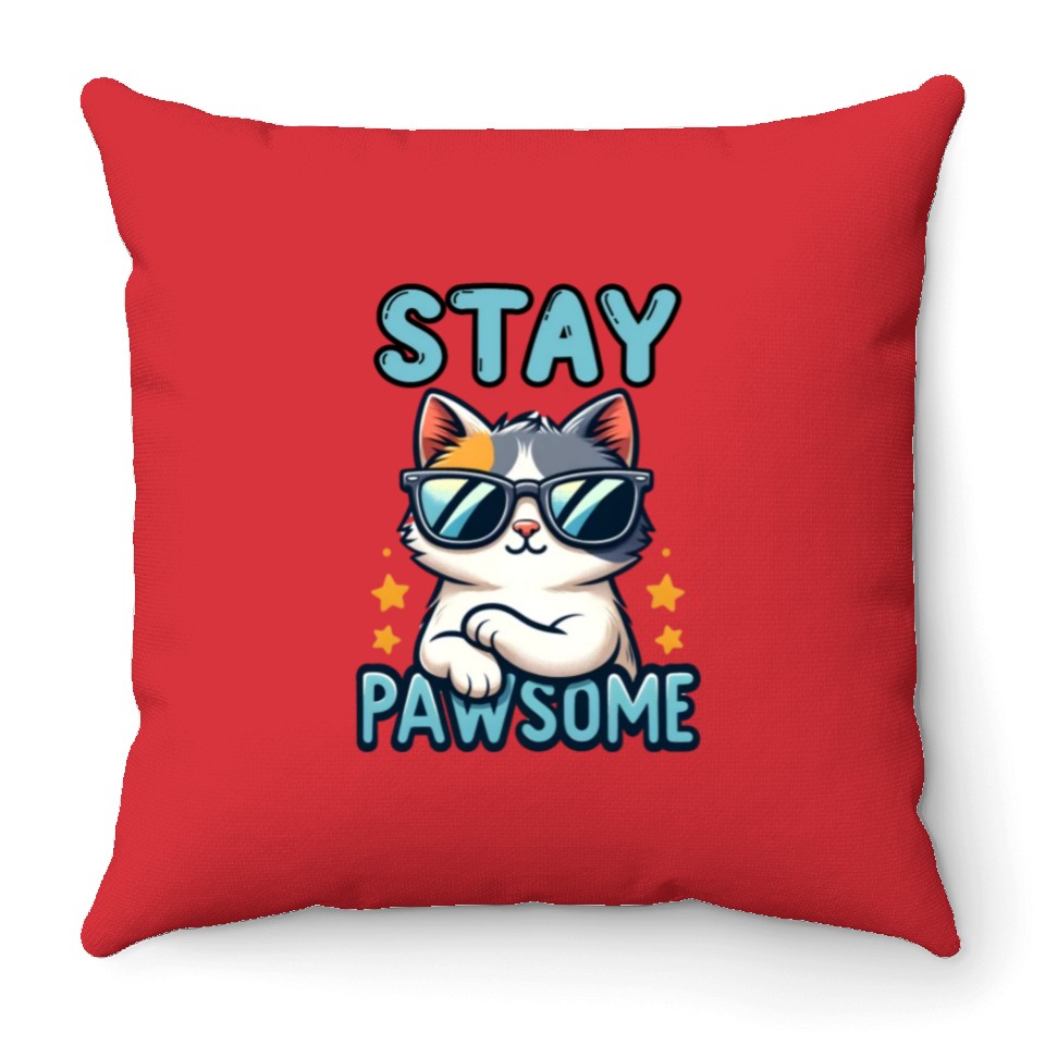 Shop for attractive Stay Pawsome Cat for a Cat owner cat lover Throw Pillows or see more Throw Pillows products on https://printblur.com right now!