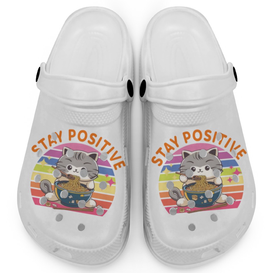 Shop for attractive Stay positive Eat delicious Japanese Style Clogs or see more Clogs products on https://printblur.com right now!