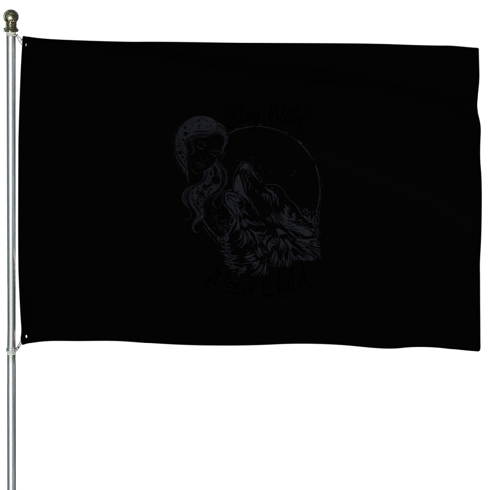 Shop for attractive Stay Wild Moon Child Wolf Howling at Moon Goddess House Flags or see more House Flags products on https://printblur.com right now!