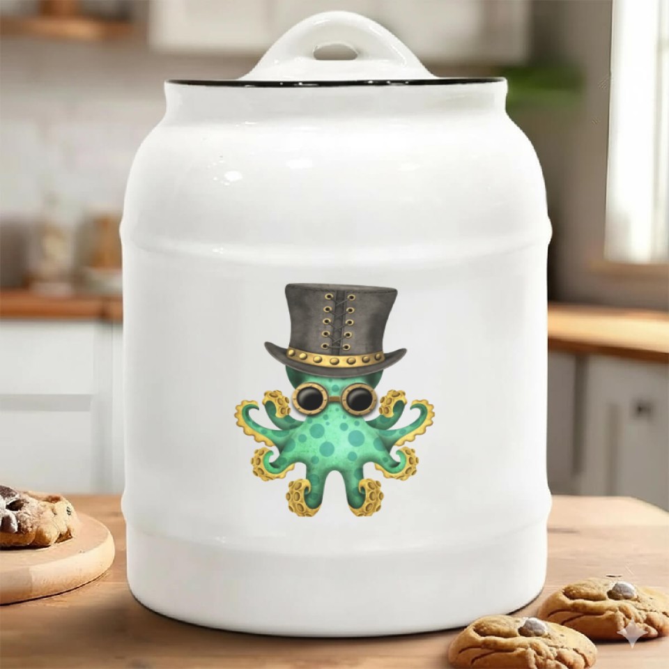 Buy eye-catching Steampunk Green Octopus Ceramic Cookie Jars or see more Ceramic Cookie Jars products at Printblur shop now to explore many surprises from our shop!