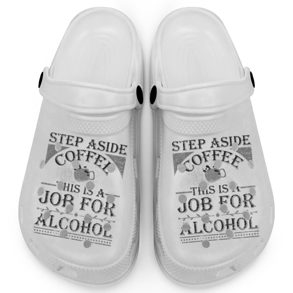 Buy eye-catching Step Aside Coffee This is a Job for Alcohol Funny Clogs or see more Clogs products at Printblur shop now to explore many surprises from our shop!