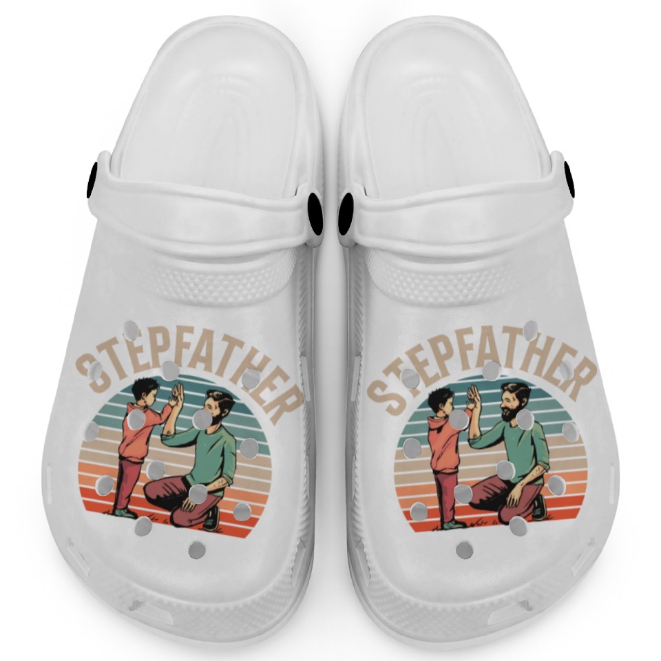 You're taking a peek at the product Stepfather Step Dad Stepdad Fathers Day Sayings Clogs For Kids WHITE belong theme Clogs at Printblur