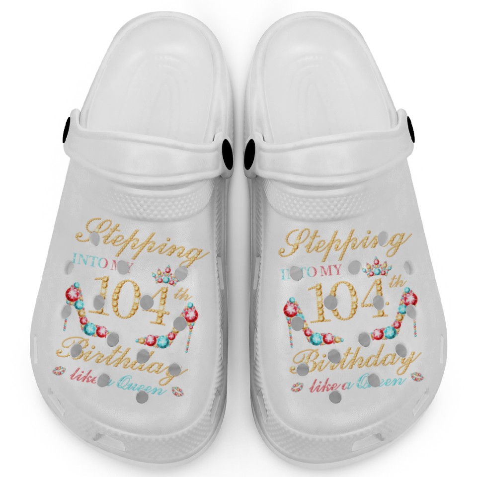 Shop for attractive Stepping Into My 104Th Like A Queen Boss Bday Clogs or see more Clogs products on https://printblur.com right now!