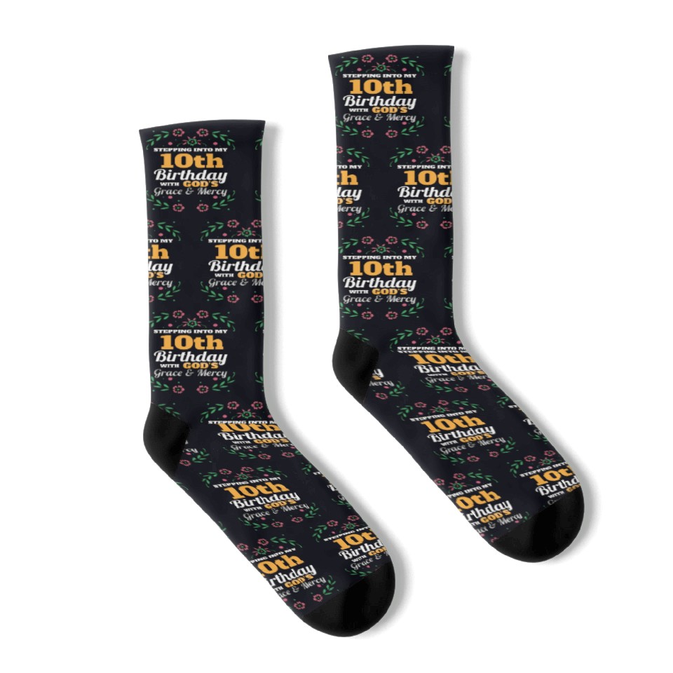 Buy eye-catching Stepping into my 10th Birthday Religious Bday Socks or see more Socks products at Printblur shop now to explore many surprises from our shop!