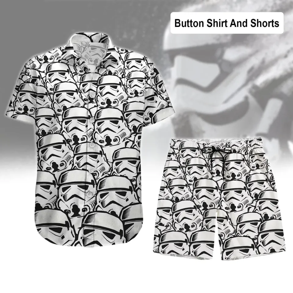 You are seeing a unique and impressive product Stormtrooper Face Button Shirt Men Star Wars Hawaiian Shirt For Kids belong theme Hawaiian Shirt And Short at Printblur