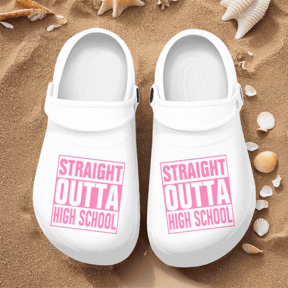You are contemplating one of the best-selling products Straight Outta High School graduation Nurse Clogs For Men WHITE belong theme Nurse Clogs at Printblur