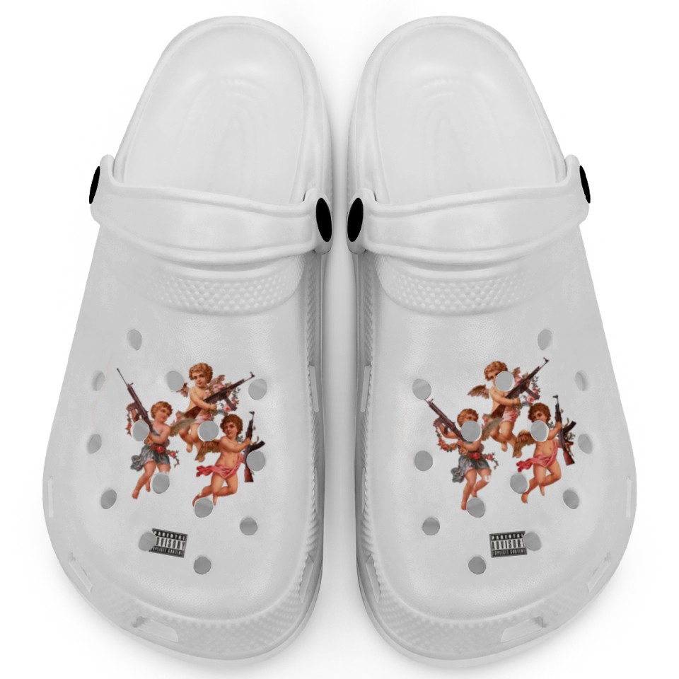 The item hot trend you're looking at is Strapped Angel Babies Clogs For Kids WHITE belong theme Clogs at Printblur