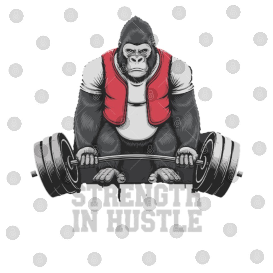You are viewing an exclusive and elegant product Strength in Hustle Gorilla Gym Motivation Digital Files For WHITE belong theme Digital Files at Printblur
