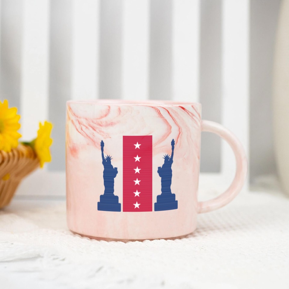 You are seeing a unique and impressive product Stylized Statue of Liberty Graphic Design Marble Mugs For Pink belong theme Marble Mugs at Printblur