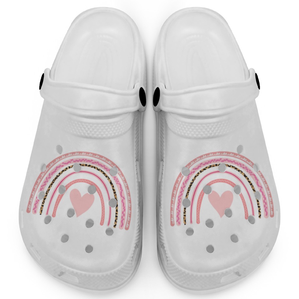 The product unique design you searched for is Substitute Teacher Boho Rainbow Back To School Clogs For Kids WHITE belong theme Clogs at Printblur
