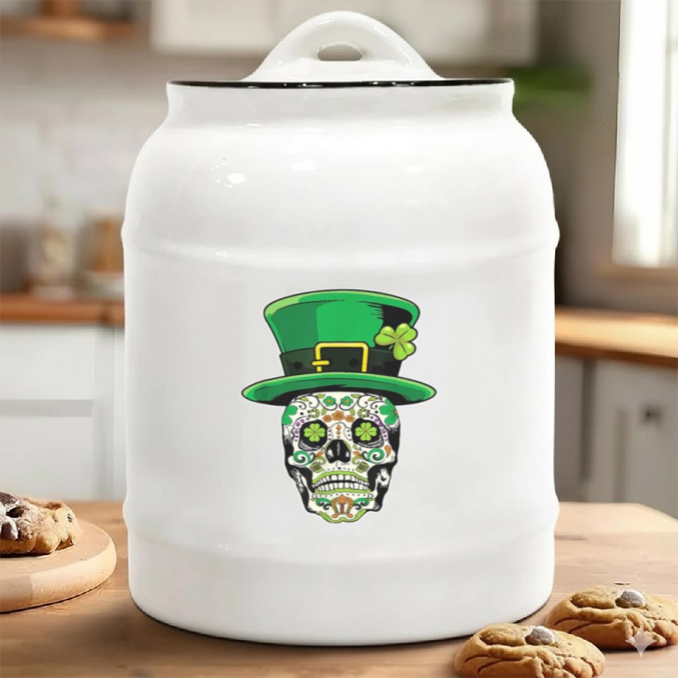 Sugar Skull | St Patricks Day of the Dead Ceramic Cookie Jars