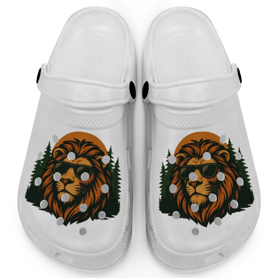 You are contemplating one of the best-selling products Summer lion forest chill design Clogs For Kids WHITE belong theme Clogs at Printblur