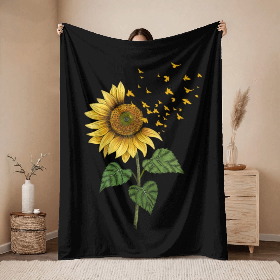 The item hot trend you're looking at is Sunflower Birds Cute Floral Birdwatching Throw Blankets For Black belong theme Throw Blankets at Printblur