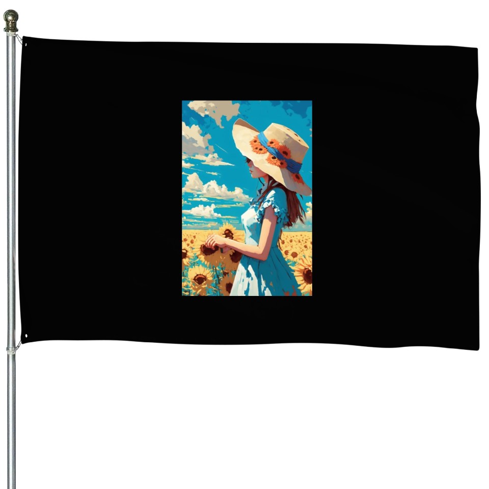 Buy eye-catching Sunflower girl summer House Flags or see more House Flags products at Printblur shop now to explore many surprises from our shop!