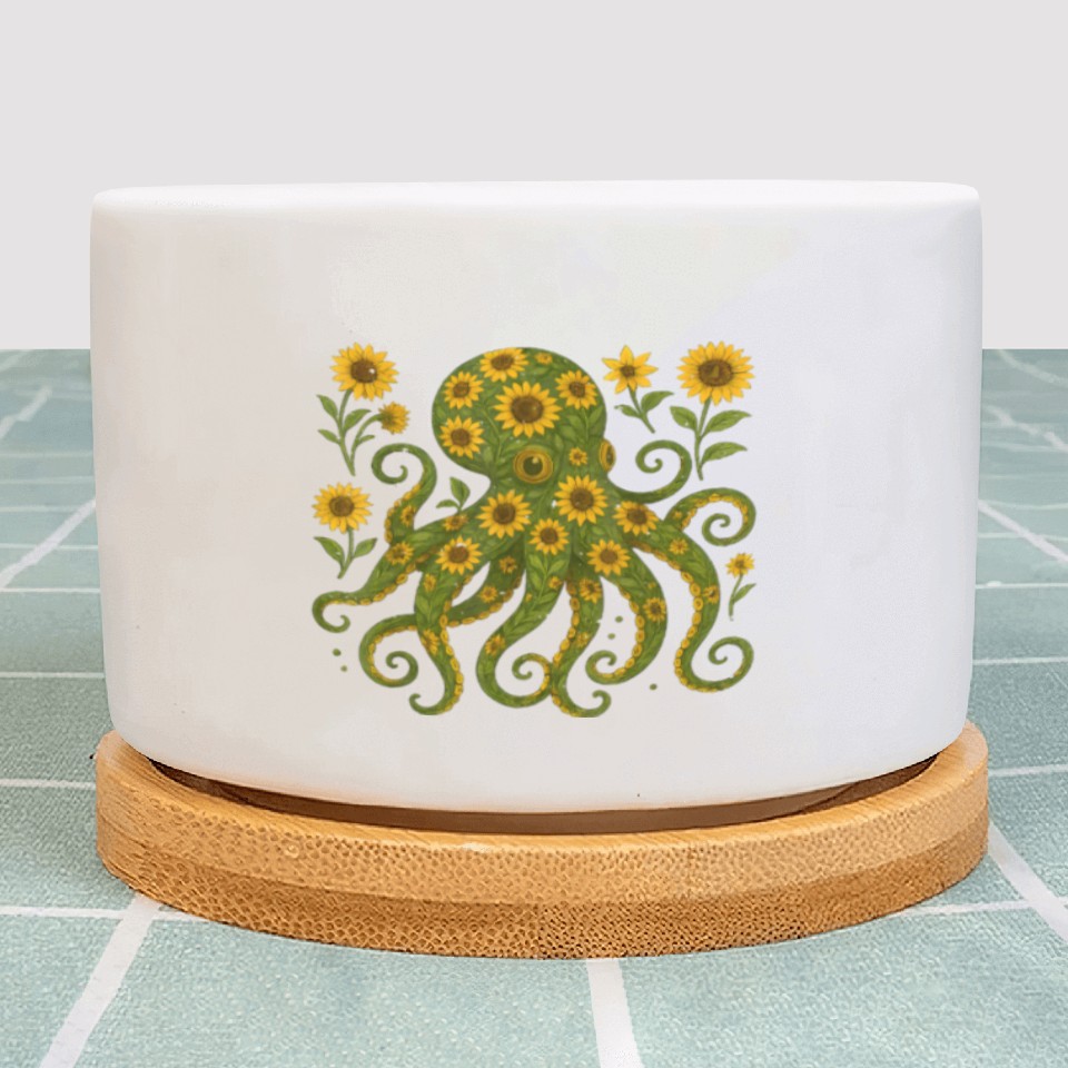 You are viewing an exclusive and elegant product Sunflower Octopus Art Print Plant Pots For WHITE belong theme Plant Pots at Printblur