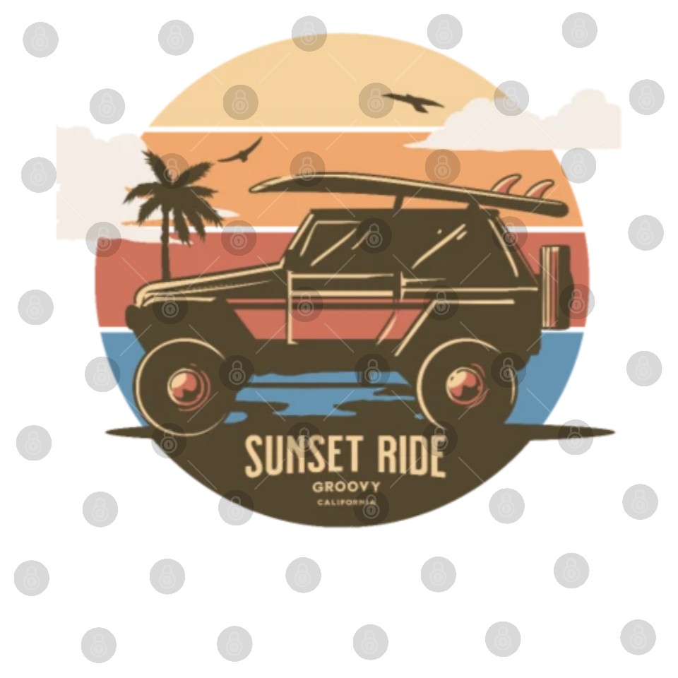 Sunset Ride - Beach Jeep - Groovy California T-Shi Digital Files
