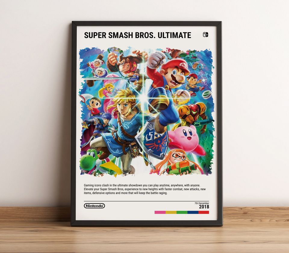 You are viewing one of the trendiest products Super Smash Bros. Ultimate (2018) Nintendo Switch Poster - Video Game Art Print - Gaming Gift For belong theme Premium Matte Vertical Posters at Printblur