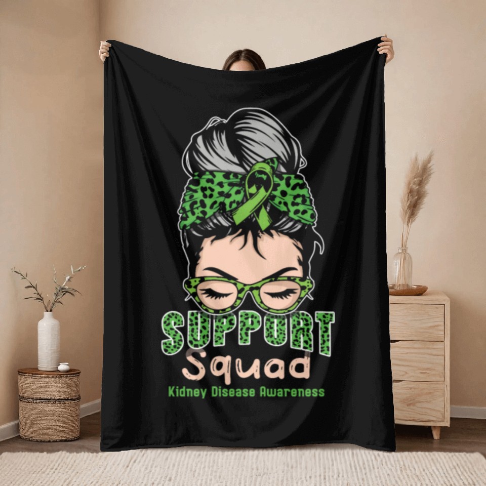 Buy eye-catching Support Squad Green Kidney Disease Awareness Month Throw Blankets or see more Throw Blankets products at Printblur shop now to explore many surprises from our shop!
