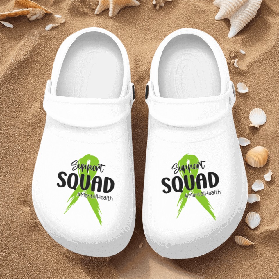 You're searching for a one-of-a-kind product Support Squad Mental Health Awareness Lime Green Nurse Clogs For Men WHITE belong theme Nurse Clogs at Printblur