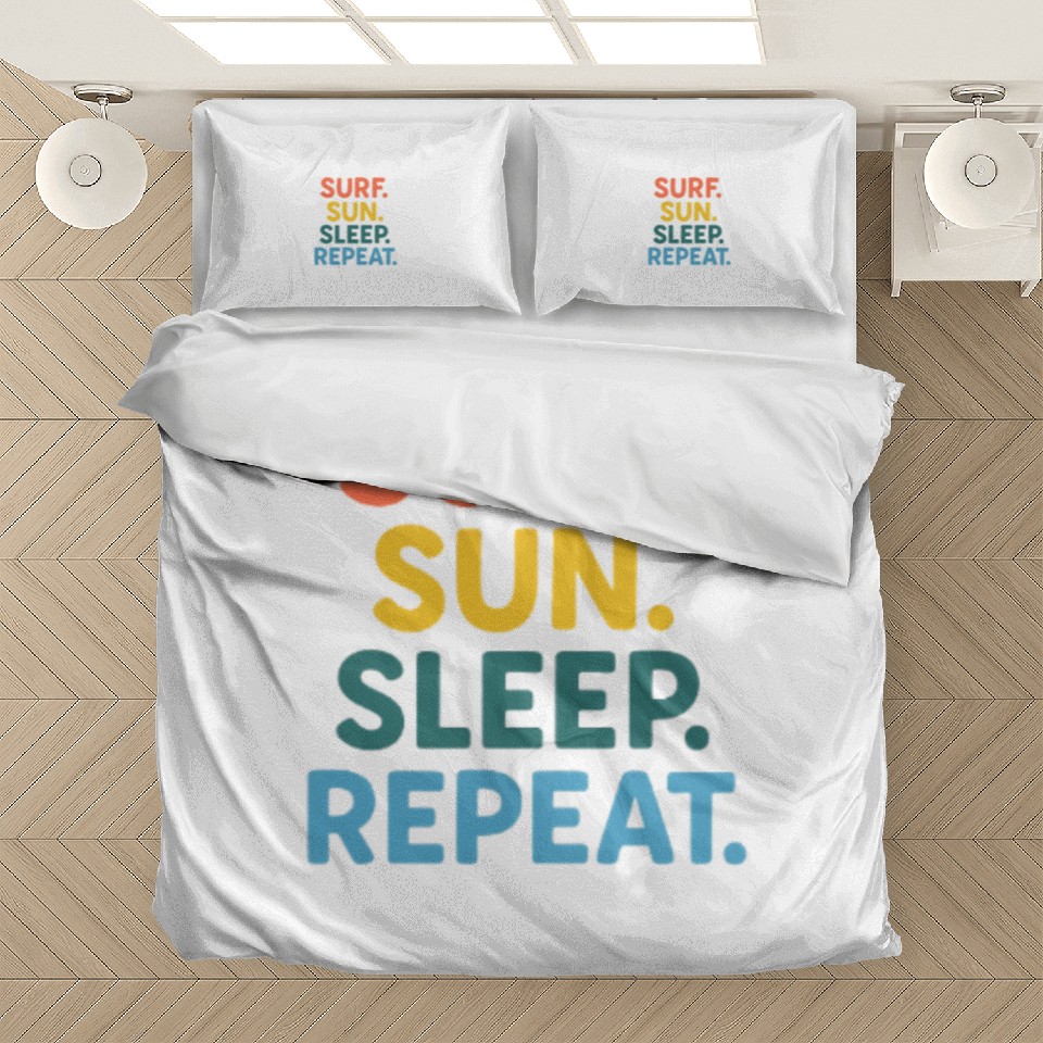 The product unique design you searched for is Surf Sun Sleep Repeat Motivational Quote Bedding Sets For WHITE belong theme Bedding Sets at Printblur