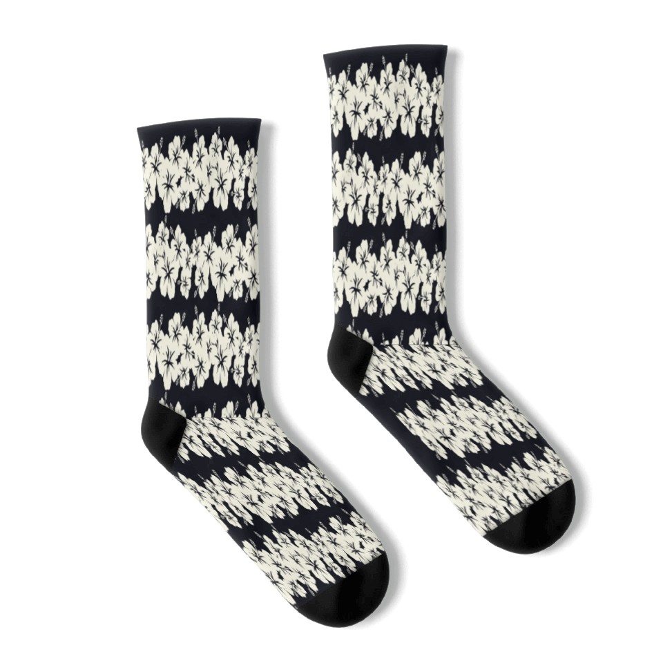You are seeing a unique and impressive product Surfer Style Floral Hibiscus Flower Row 1970S Socks For Black belong theme Socks at Printblur
