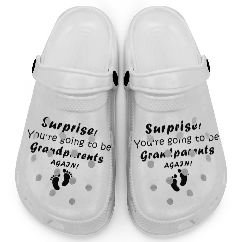 Shop for impressive Surprise You re going to be Grandparents Again Clogs or see more Clogs products right now on Printblur to enjoy your happiness!