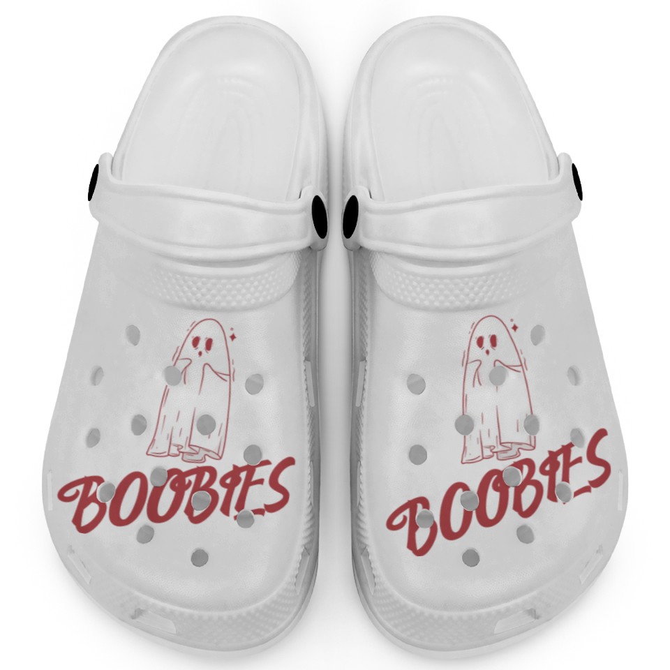 Surprised ghost loves boobies, Boo halloween Clogs