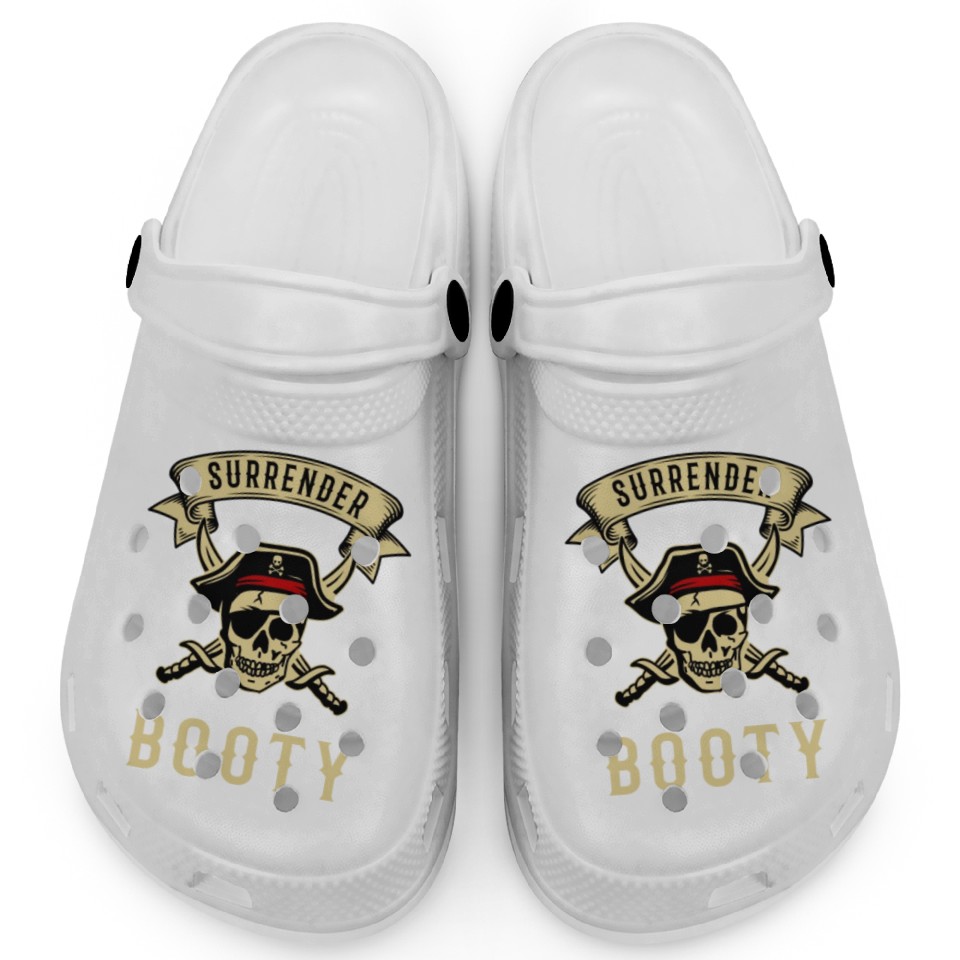 Buy eye-catching Surrender Your Booty Pirate Skull Crossbones Clogs or see more Clogs products at Printblur shop now to explore many surprises from our shop!