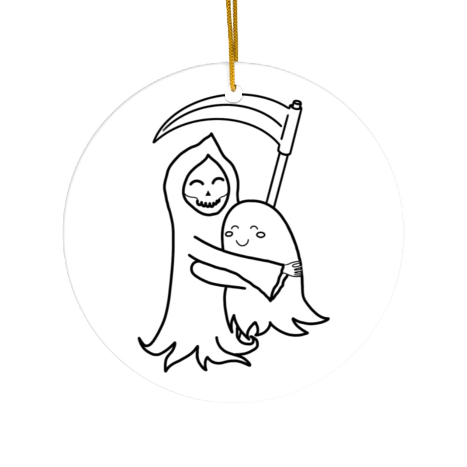 Shop for impressive Sweet Grim Reaper & Ghost Hug | Friends | Outlines Ceramic Ornaments or see more Ceramic Ornaments products right now on Printblur to enjoy your happiness!