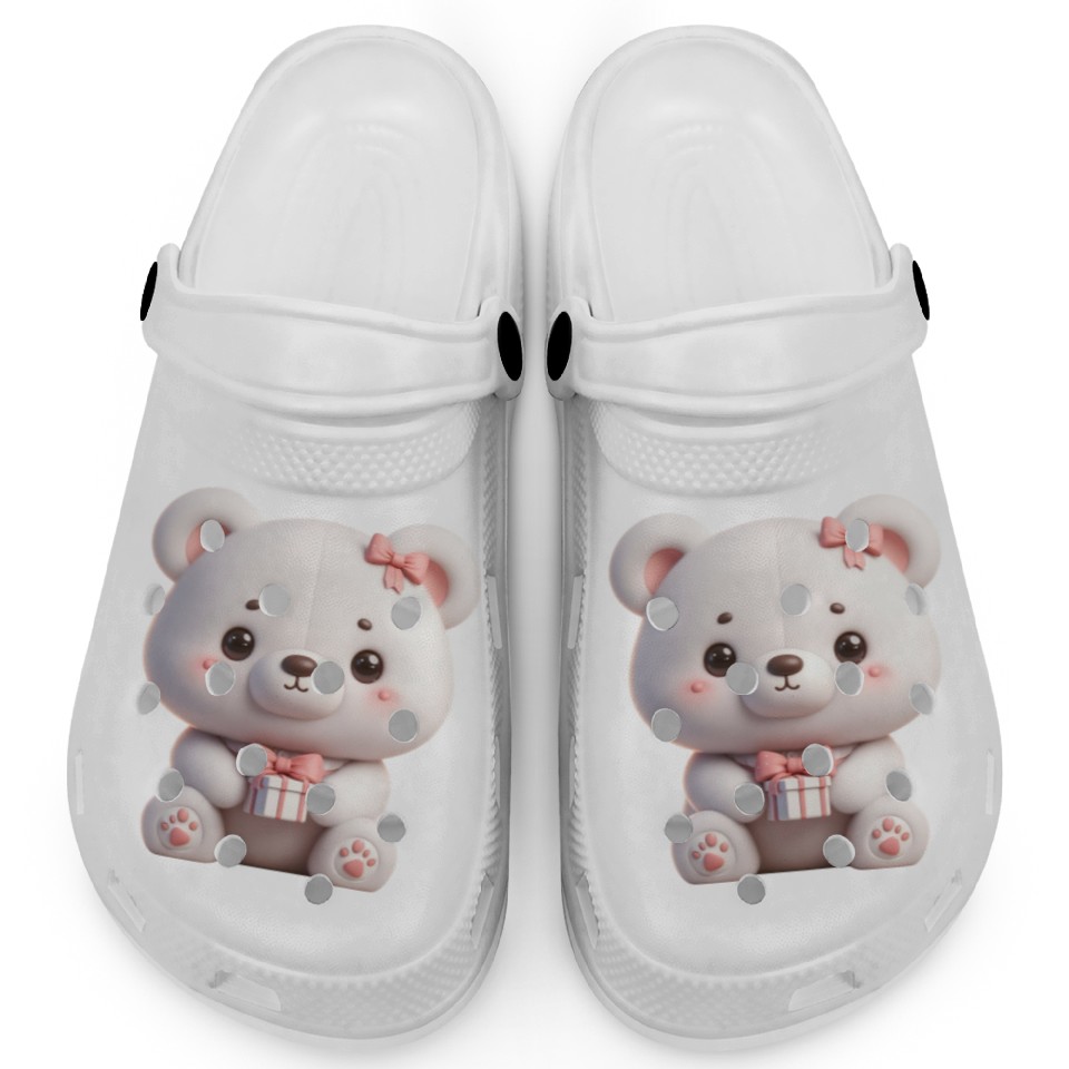 You're taking a peek at the product Sweet Teddy Bear and Gift Box Clogs For Kids WHITE belong theme Clogs at Printblur