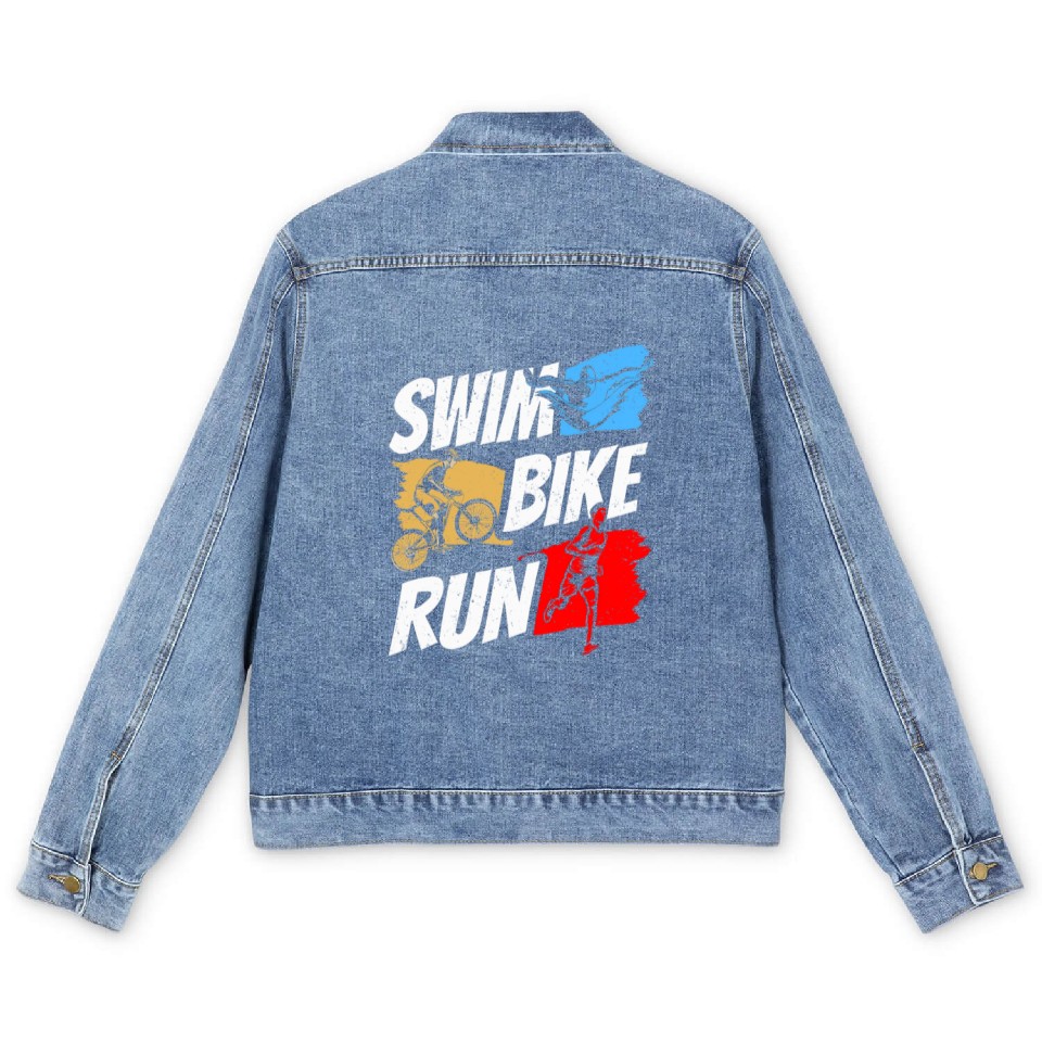 Buy eye-catching Swim Bike Run Triathlete Triathlon Triathlons Men's Denim Jackets or see more Men's Denim Jackets products at Printblur shop now to explore many surprises from our shop!
