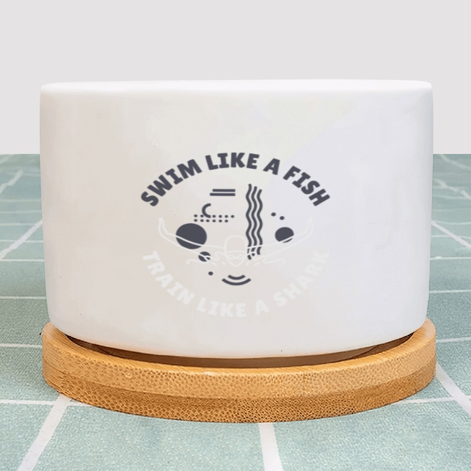 You are seeing a unique and impressive product Swim Like A Fish, Train Like A Shark | Swimming Plant Pots For WHITE belong theme Plant Pots at Printblur
