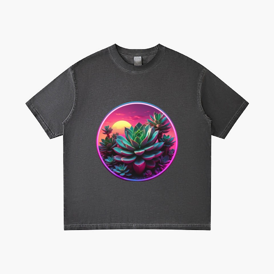 You are shopping for a stunning and trendy product Synthwave Succulent Art Gradient T Shirts For Men Washed Black belong theme Gradient T-Shirts at Printblur