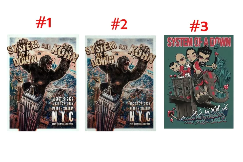 You are shopping for a stunning and trendy product SYSTEM OF DOWN & Korn Tour New York 2025 Vertical Poster For belong theme Premium Matte Vertical Posters at Printblur