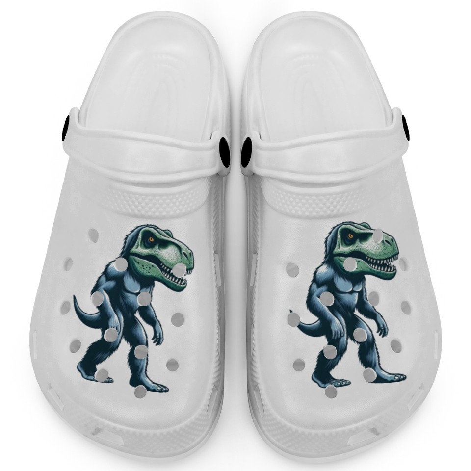 You're searching for a one-of-a-kind product T-Rex Bigfoot Sasquatch Gorilla Fusion Creature Clogs For Kids WHITE belong theme Clogs at Printblur