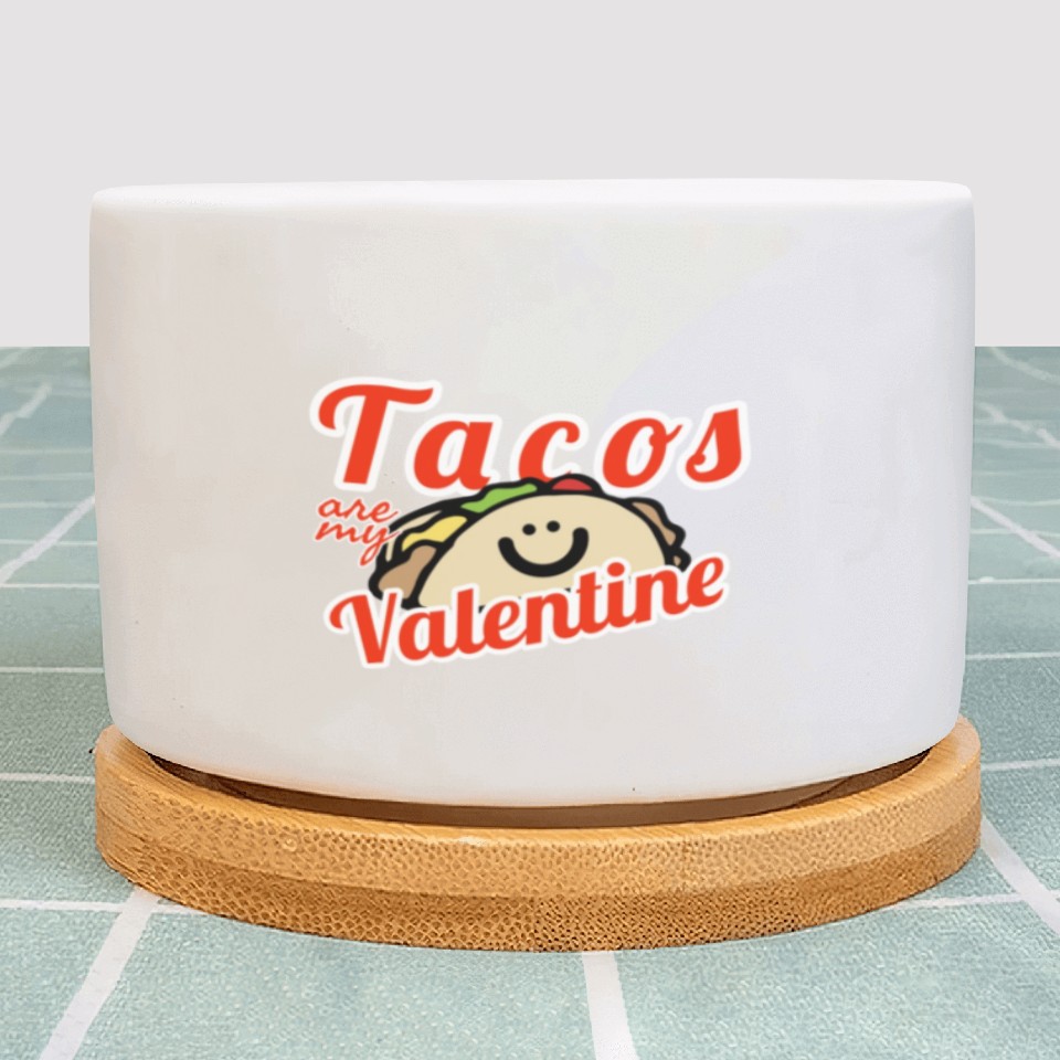 You are viewing an exclusive and elegant product Tacos Are My Valentine1853 Plant Pots For WHITE belong theme Plant Pots at Printblur