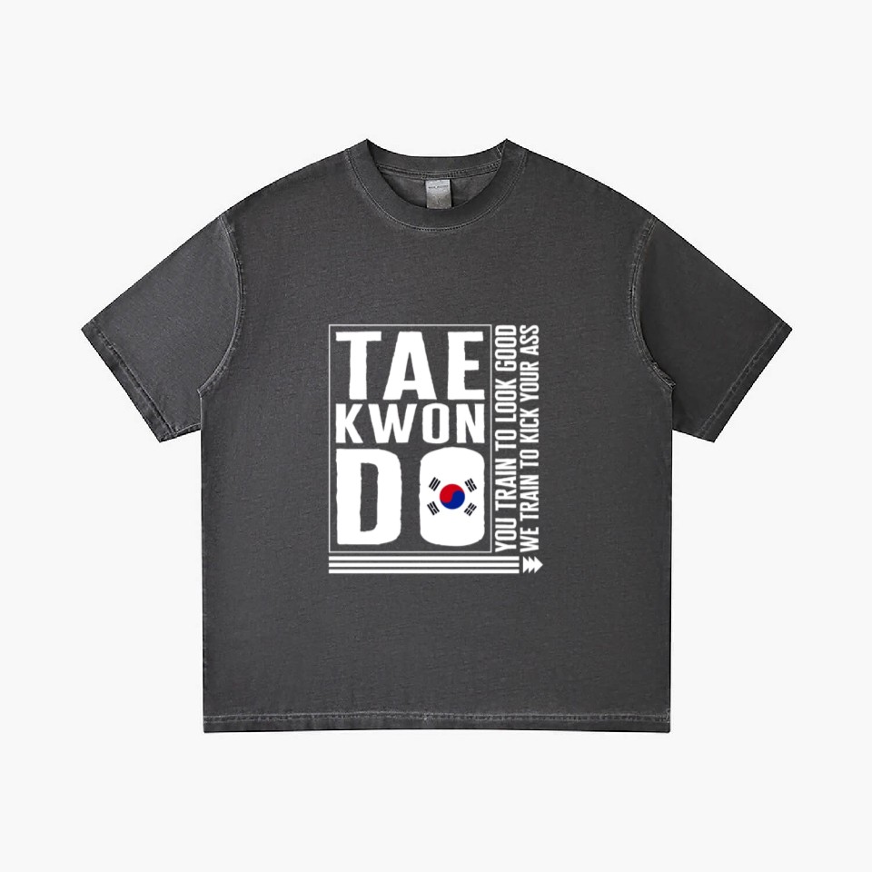 You are shopping for a stunning and trendy product Taekwondo Gradient T Shirts, We Train Too Kick Your Ass Korea For Men Washed Black belong theme Gradient T-Shirts at Printblur