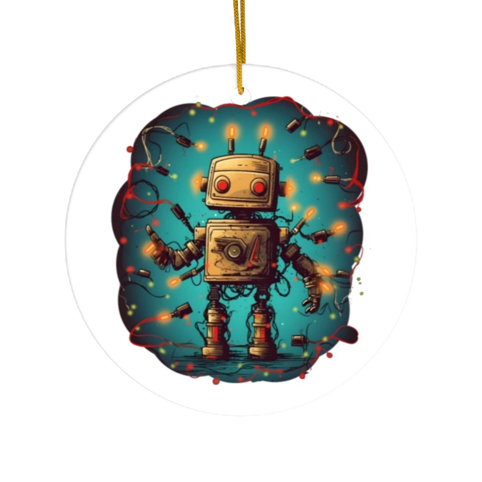 You're looking at the eye-catching product Tangled Techmas Bot Ceramic Ornaments For WHITE belong theme Ceramic Ornaments at Printblur