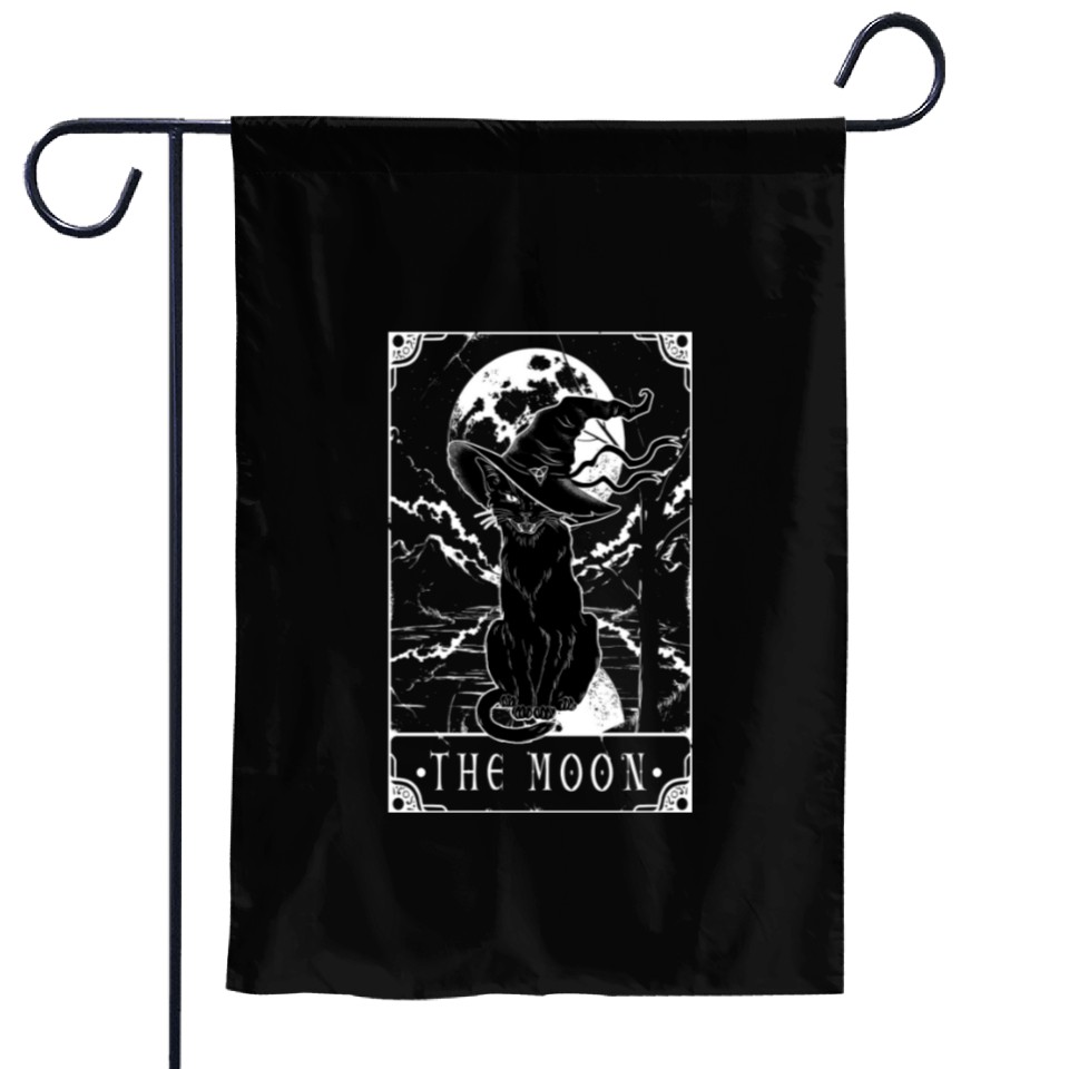 You're looking at the eye-catching product Tarot Card Moon And Black Cat Witch Hat Halloween Garden Flags For Black belong theme Garden Flags at Printblur