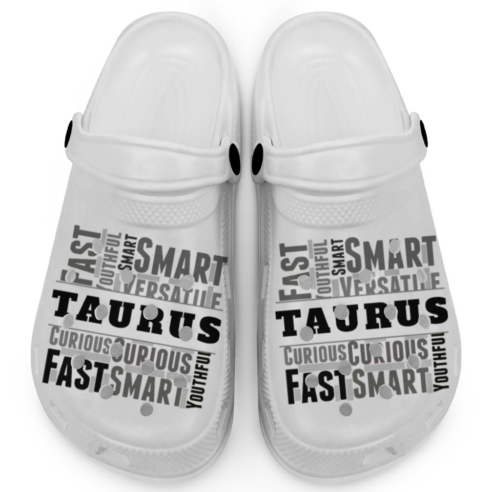 Own fascinating Taurus Zodiac Star Sign Word Cloud Square Monochro Clogs or see more Clogs products now from Printblur shop to enjoy your shopping time!