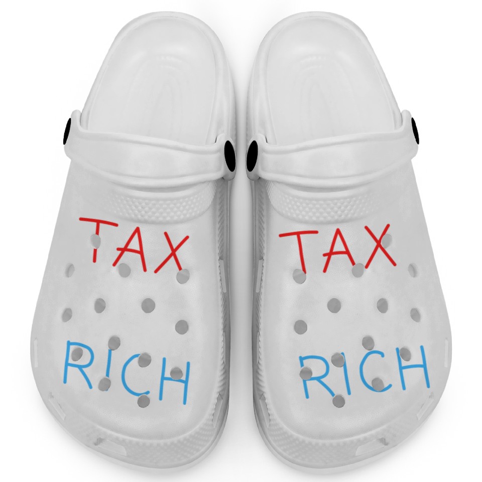 TAX THE RICH (Red, White and Blue letters) Clogs